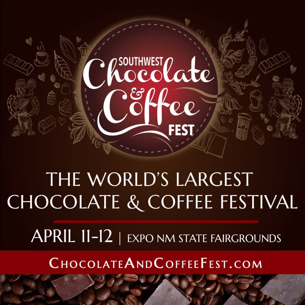 Event by Southwest Chocolate and Coffee Fest Expo New Mexico Public The world’s largest festival dedicated to chocolate, coffee, and gourmet foods. April 11 & 12. 10am – 5pm daily. Expo NM, Albuquerque. Over 200 vendors of chocolates, coffees, candies, cakes, cookies, teas, wine, & beer. Demos, classes, tastings. Save room for dessert!